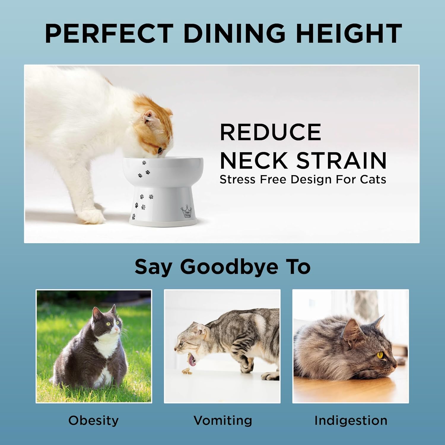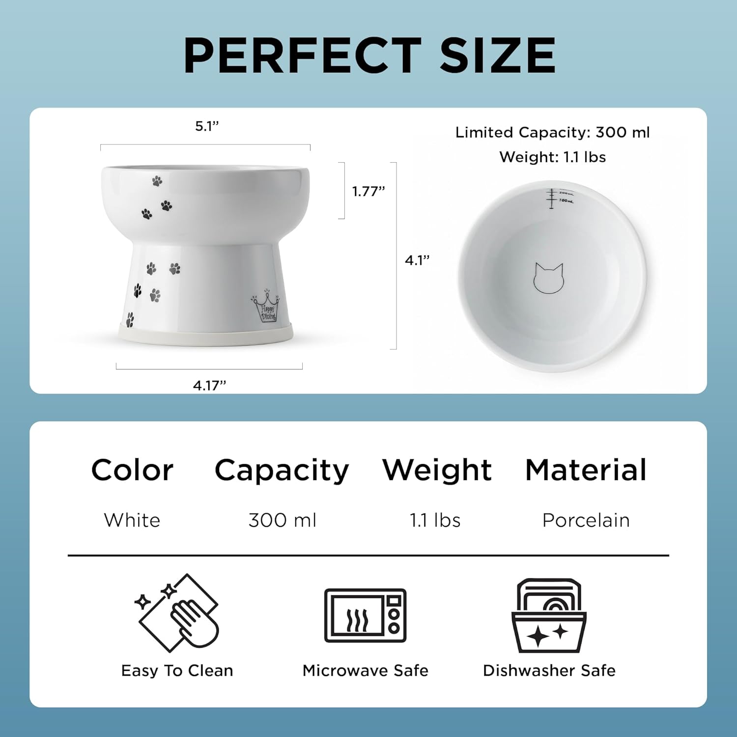 - 【Safe & Easy to Clean】Made from high-quality porcelain; this raised cat bowl is durable, hygienic, microwave and dishwasher-safe. Free from lead & cadmium; meets strict US, EU and Japanese safety standards; safer alternative to plastic or steel.