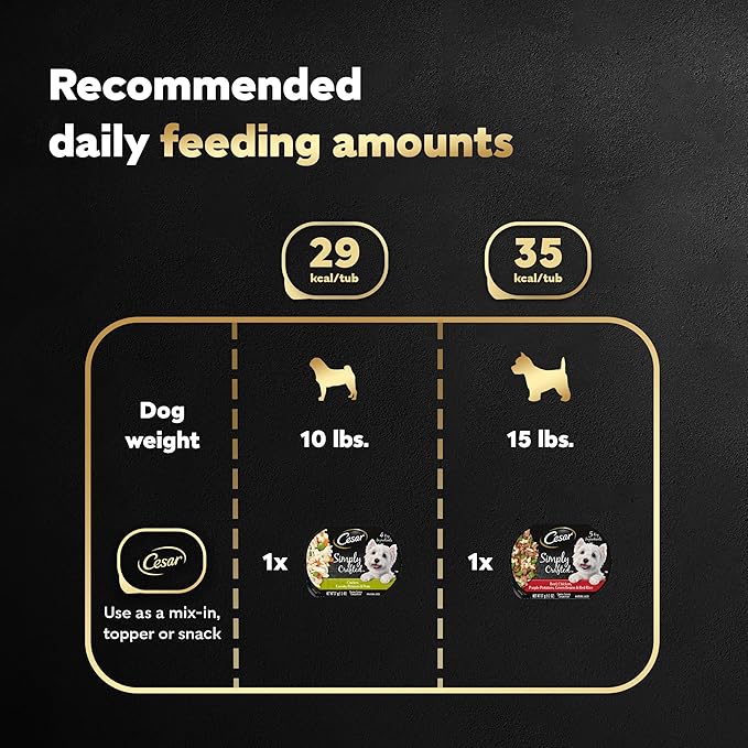 Cesar Simply Crafted Adult Wet Dog Food Meal Topper, Chicken, Carrots, Potatoes & Peas and Beef, Chicken, Purple Potatoes, Green Beans & Red Rice Variety Pack, 1.3oz. (8 Count, Pack of 2)