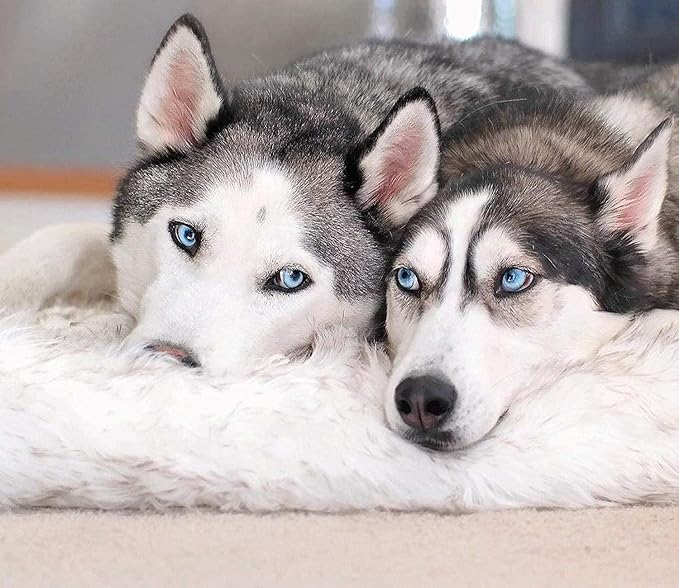 PAW BRANDS PupRug Orthopedic Dog Bed for Large Dogs with Fluffy Soft Faux Fur and Memory Foam for Joint Pain Relief, Machine Washable and Waterproof Couch Bed, White, Extra Large