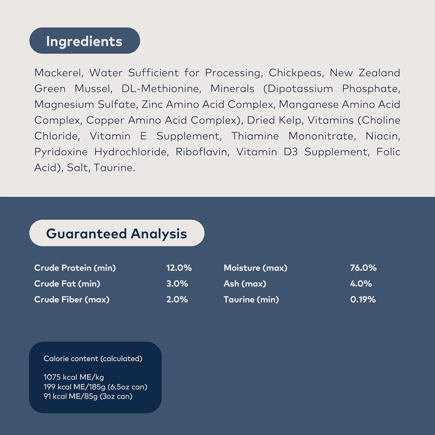 - HIGH PROTEIN, NUTRIENT DENSE, MOISTURE RICH: Featuring wild-caught Mackerel, Organs, Bone, and New Zealand Green Mussels, this grain-free pate style cat food delivers premium nutrition with a mouth-watering taste for all cats and life stages. This moisture rich, chunky-loaf canned cat food uniquely support cat hydration.