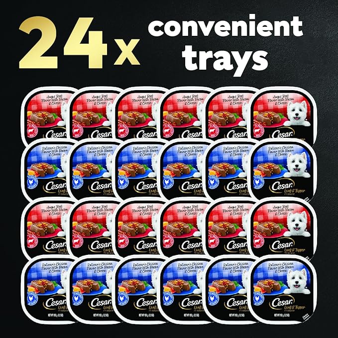 - Peel Away Seals: Cesar Loaf & Toppers gourmet soft dog food is served in convenient trays with easy, peel away seal