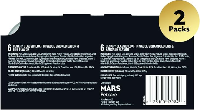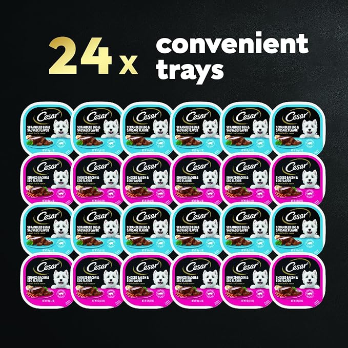Cesar Wet Dog Food Classic Loaf in Sauce Breakfast Variety Pack, 3.5 oz. Easy Peel Trays (12 Count, Pack of 2)