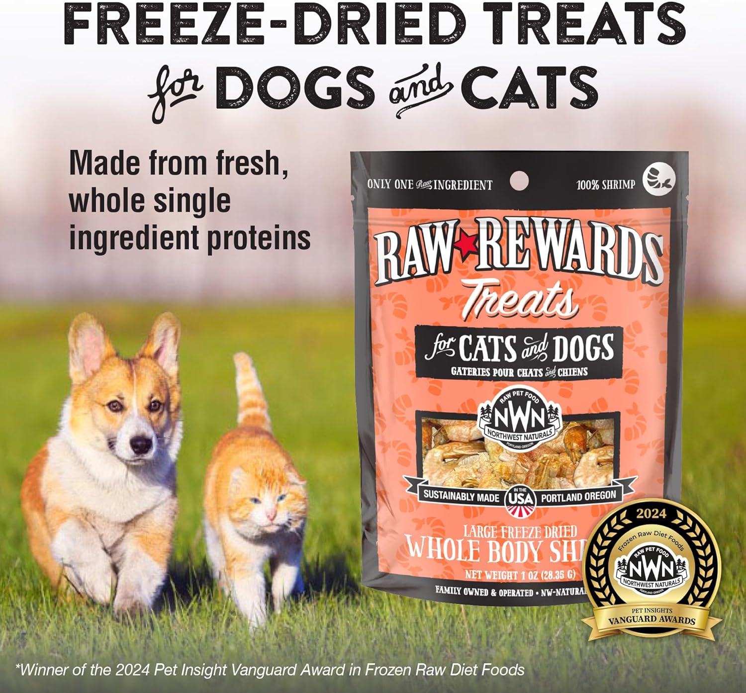 Northwest Naturals Raw Rewards Freeze-Dried Shrimp Treats for Dogs and Cats - Bite-Sized Pieces - Healthy, 1 Ingredient, Human Grade Pet Food, All Natural, Proudly Made in USA, 1 Oz