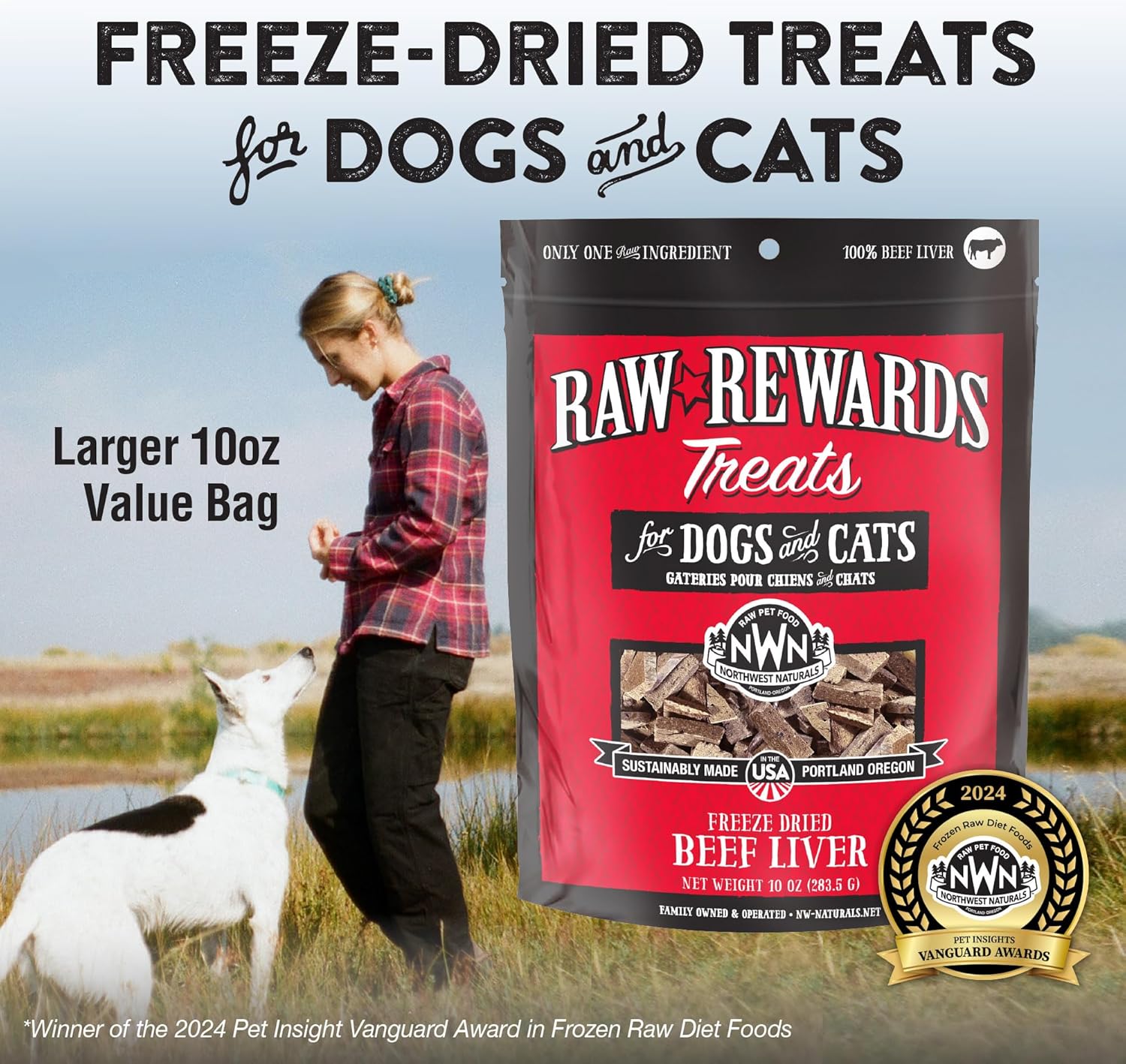 Northwest Naturals Raw Rewards Freeze-Dried Beef Liver Treats for Dogs and Cats - Bite-Sized Pieces - Healthy, 1 Ingredient, Human Grade Pet Food, All Natural, Proudly Made in USA, 10 Oz
