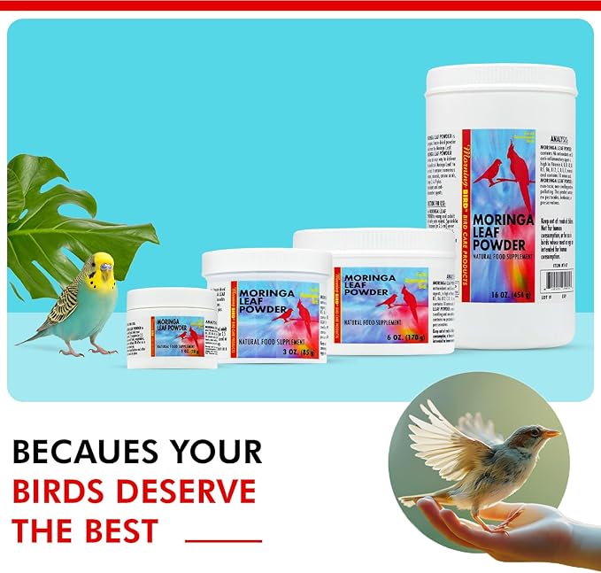Morning Bird Moringa Leaf Powder 16 Oz – Natural Food Supplement with Omega-3, Iron, Vitamins B & K – Supports Detox, Energy, Brain & Immune Health – Clean Plant-Based Supplement for All Birds