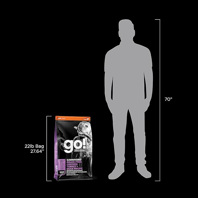 Go! Solutions Carnivore, Grain-Free, Protein Rich Dry Dog Food, Chicken, Turkey and Duck Senior Recipe, 22 lb Bag