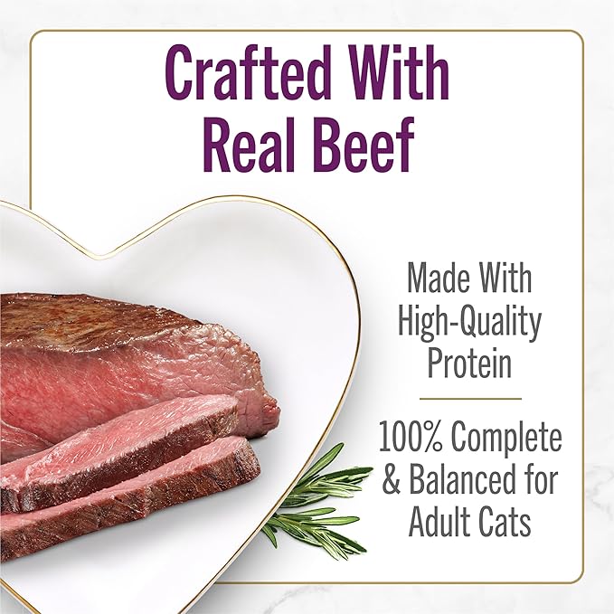 - COMPLETE AND BALANCED: Made with beef and gravy cat food makes mealtime exciting while delivering 100 percent complete and balanced adult nutrition.