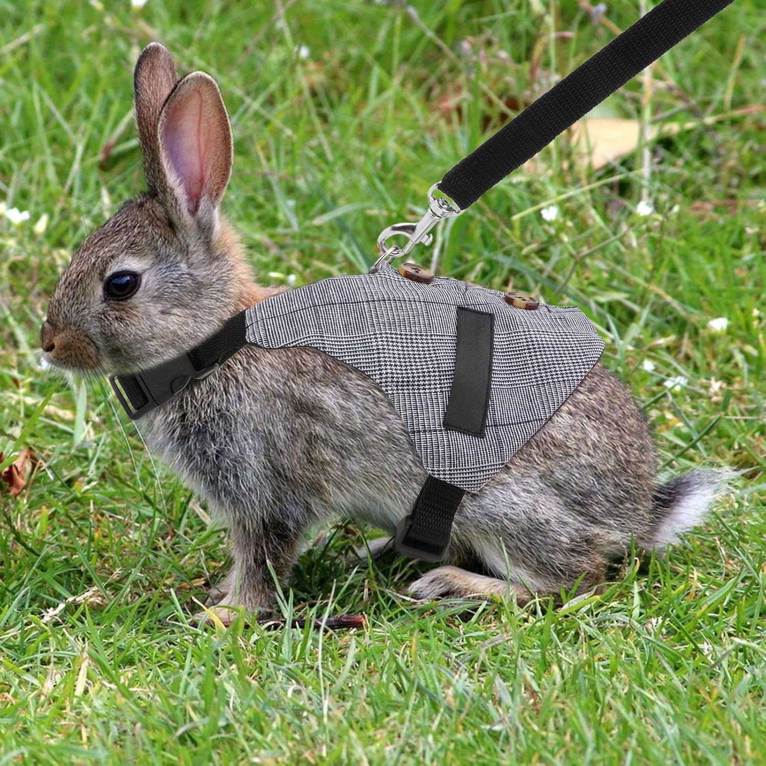 Rabbit Vest Harness and Leash Set Adjustable Formal Suit Style for Bunny Kitten Small Animal Walking (L)