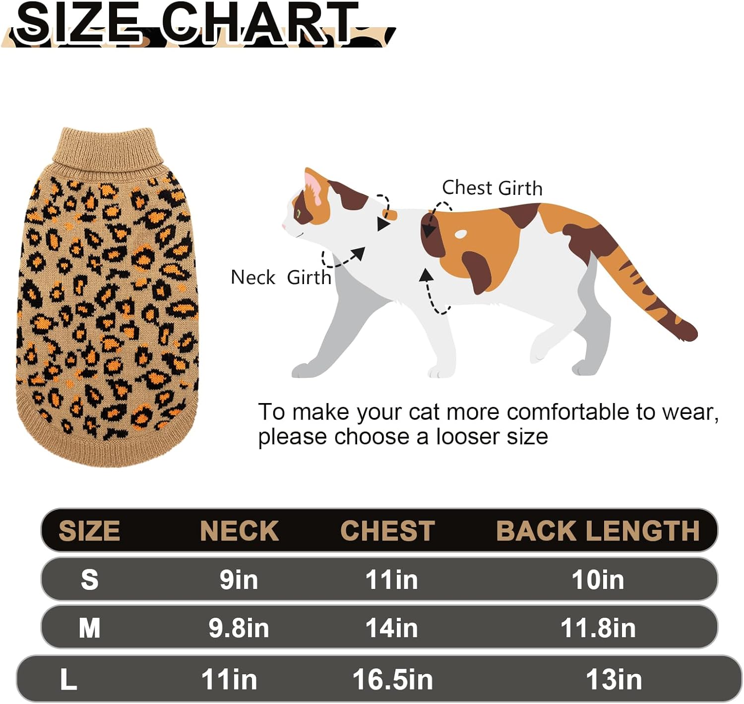 Mihachi Winter Warm Cat Sweater Turtleneck Puppy Pets Sweater Knit Vest Fashion Leopard for Cats Puppy Small Animals Brown Large