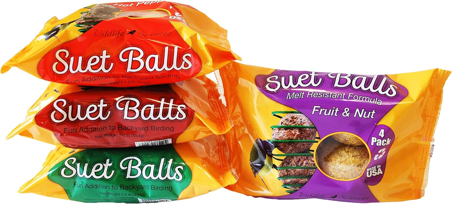 Wildlife Sciences Melt Resistant Suet Balls Variety 16 Pack, 4 Wrapped Packs of 4 Bird Suet Balls