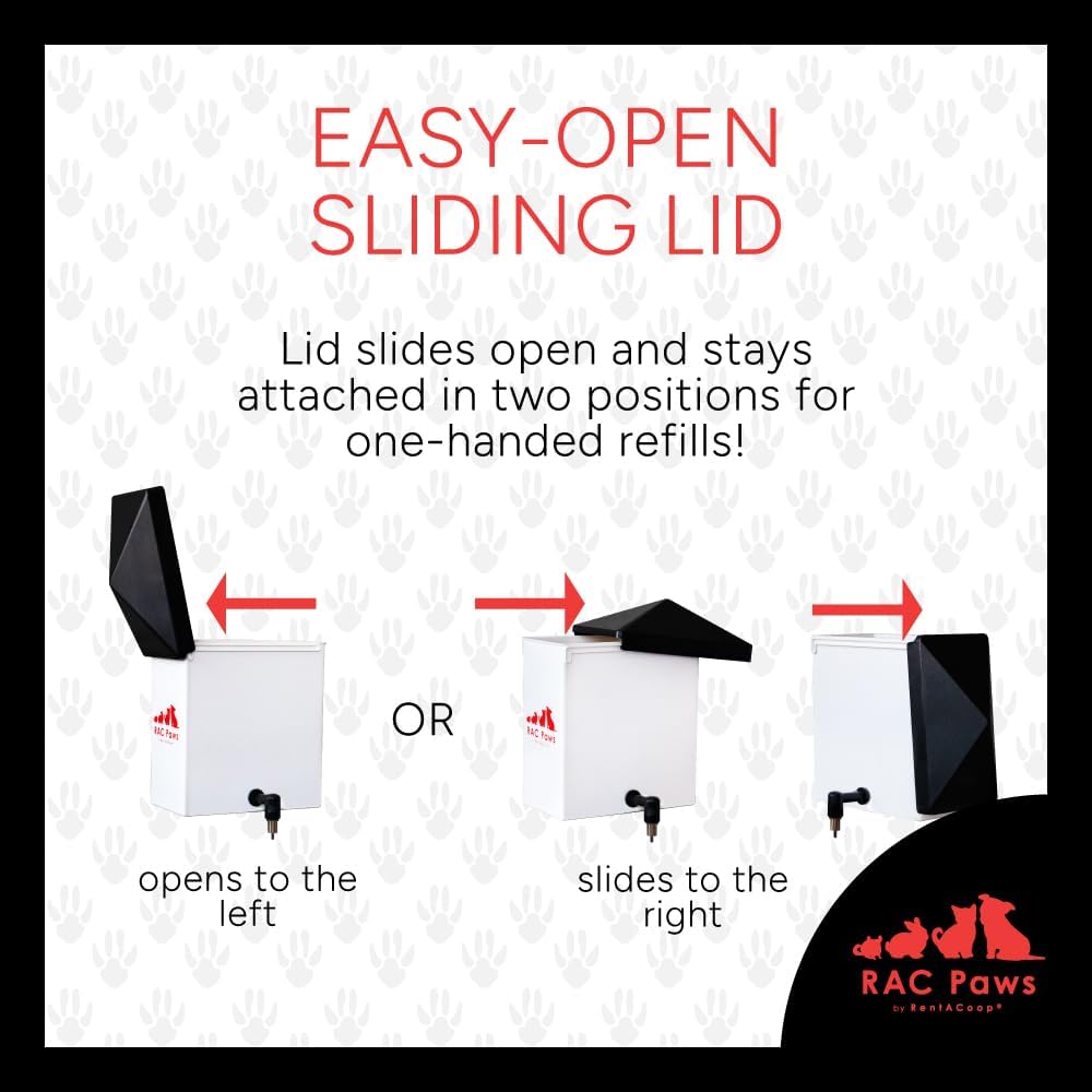 - What's in the Box: One 64oz(2L) BPA-free food-grade plastic waterer, sliding cone lid, chew-resistant No-Drip Brass Nozzle, universal fit spring clip and instructions