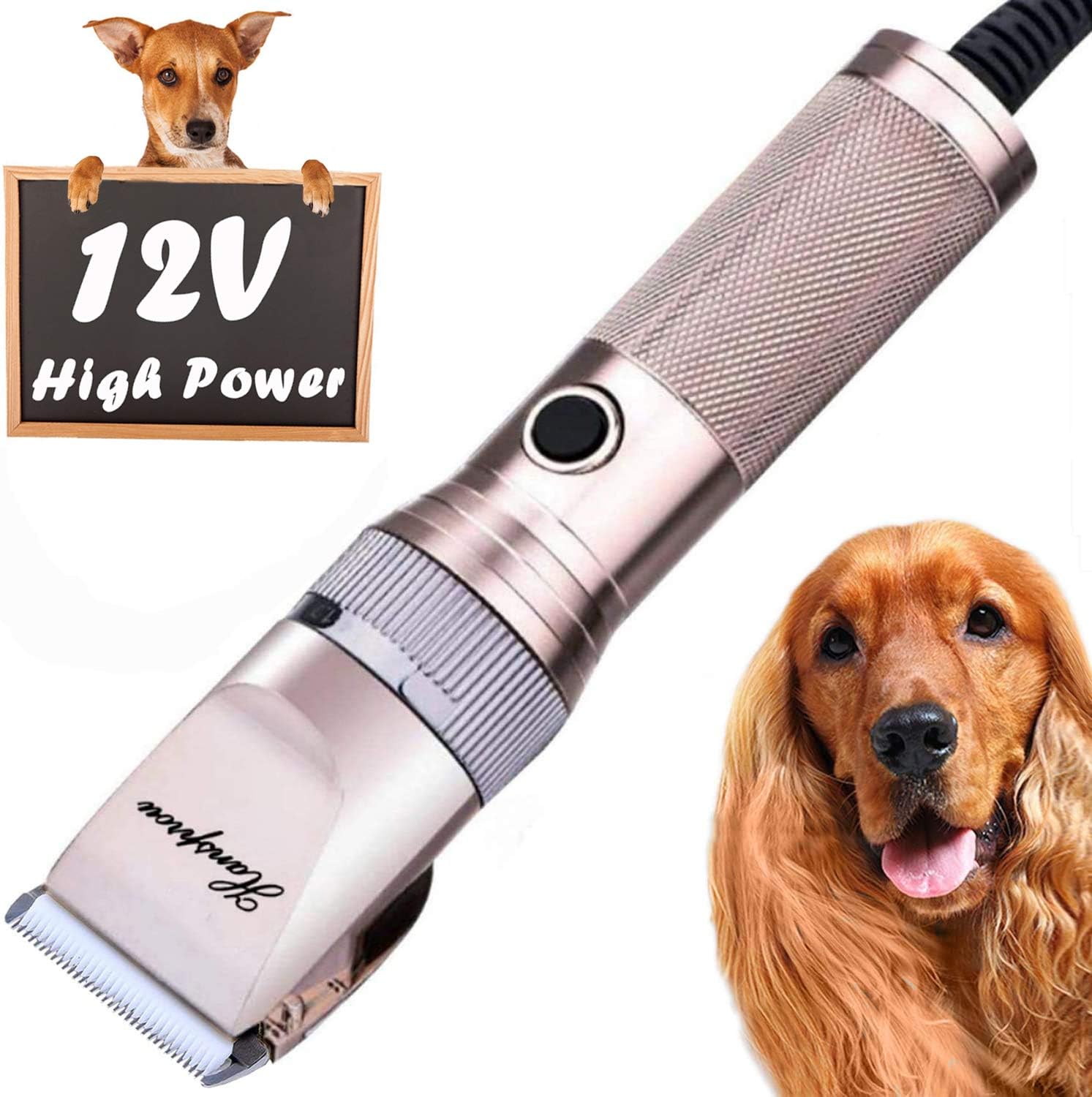 Dog Clippers for Grooming, 12V Pet Hair Clipper, Professional Heavy Duty Pet Grooming Clipper Corded Dog Trimmer for Thick Coats with Guard Combs Brush for Dogs Cats