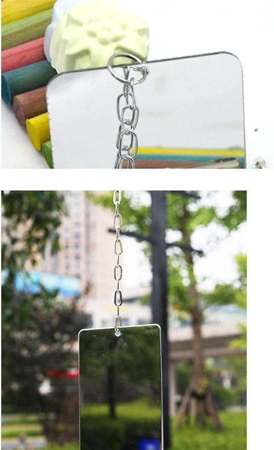 - ใClear & Durable Acrylic Mirrorใ Crafted from high-quality acrylic, this bird mirror is lightweight, shatterproof, and safer than glass or stainless steel. The ultra-clear surface offers a true reflection that attracts birds. ๐Please remove the protective film from the mirror before use.