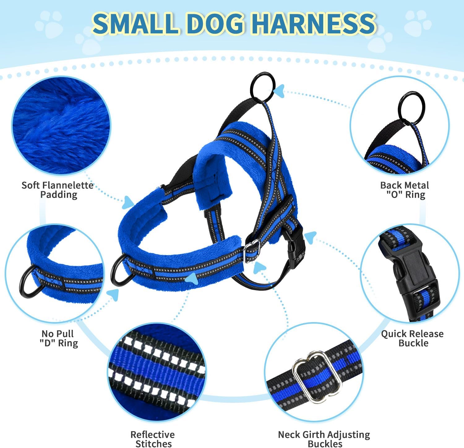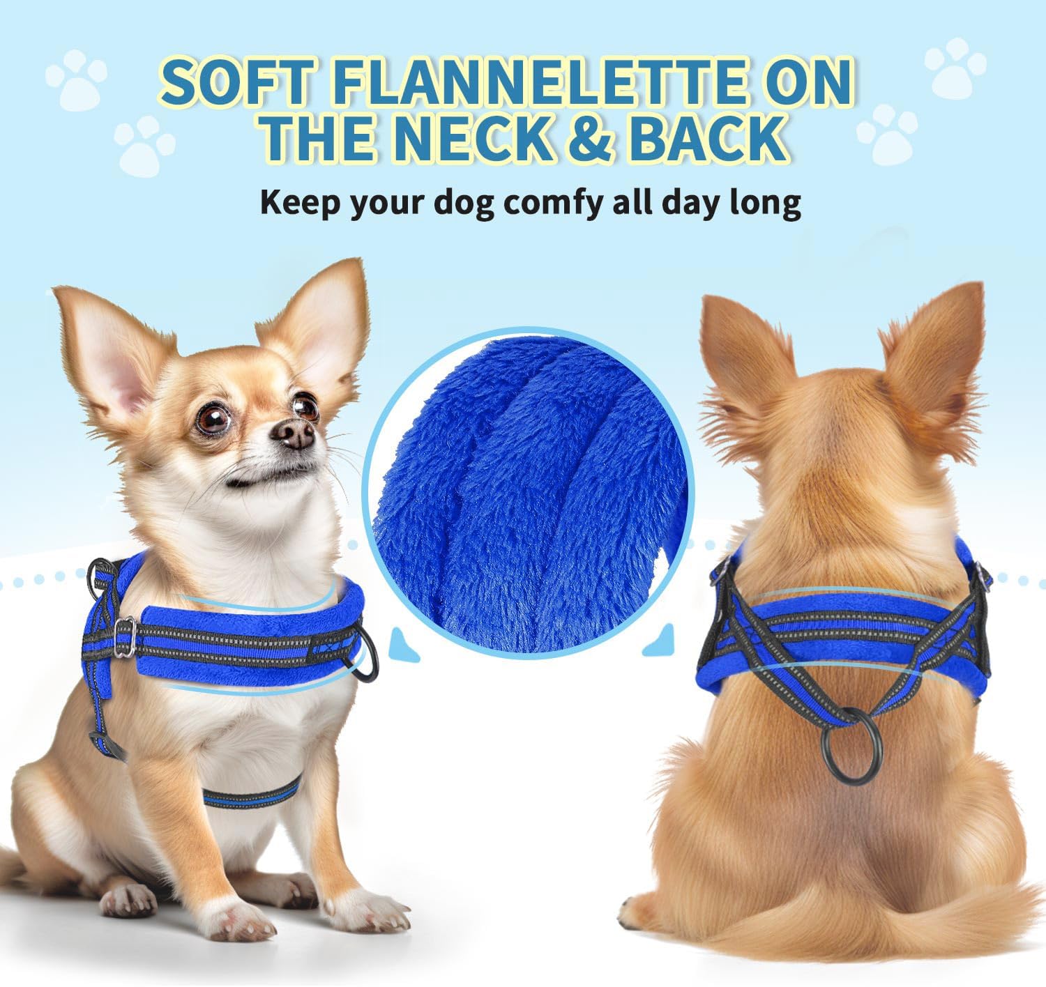 Lukovee No Pull Dog Harness and Leash Set, Soft Padded Small Dog Harness, Neck & Chest Adjustable Reflective Vest Puppy Harness with 4ft Lightweight Anti-Twist Dog Leash for Small Dogs (XXS, Blue)