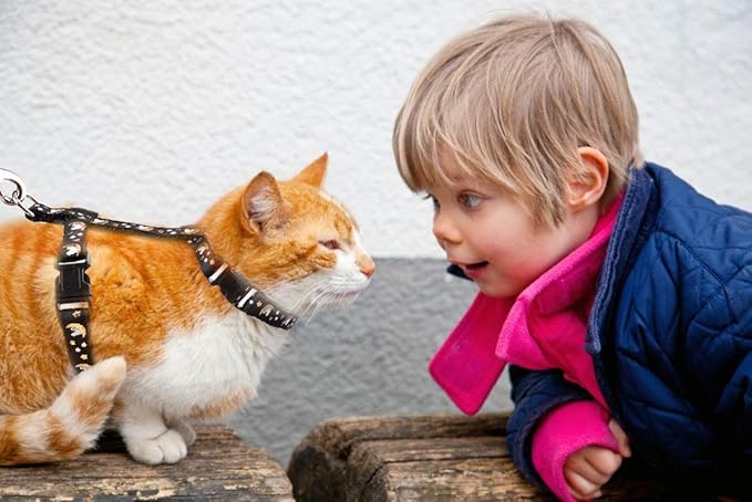 - 【Charming Original Design】Original unique design,Beautiful patterns of golden moon and stars,The stars will glow in the dark after being sunbathed.With our cat harness and leash set,your cat will always stands out strikingly.
