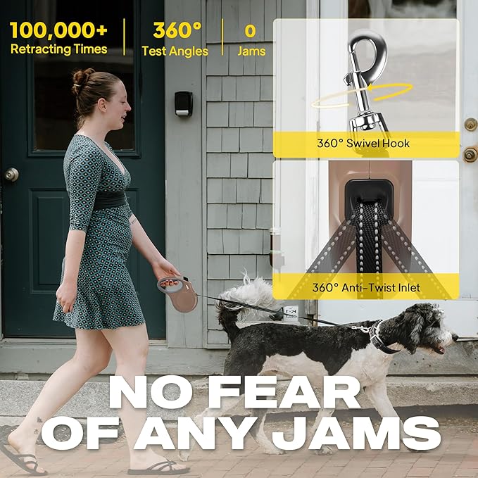 - HEAVY DUTY, DURABLE & STEADY - 16 ft high strength nylon tape with durable rustproof swivel hook and steady impact-resistant ABS material, suitable for large dogs up to 110 lbs. Top durability Internal Coil Spring for Consistent Retraction several years.
