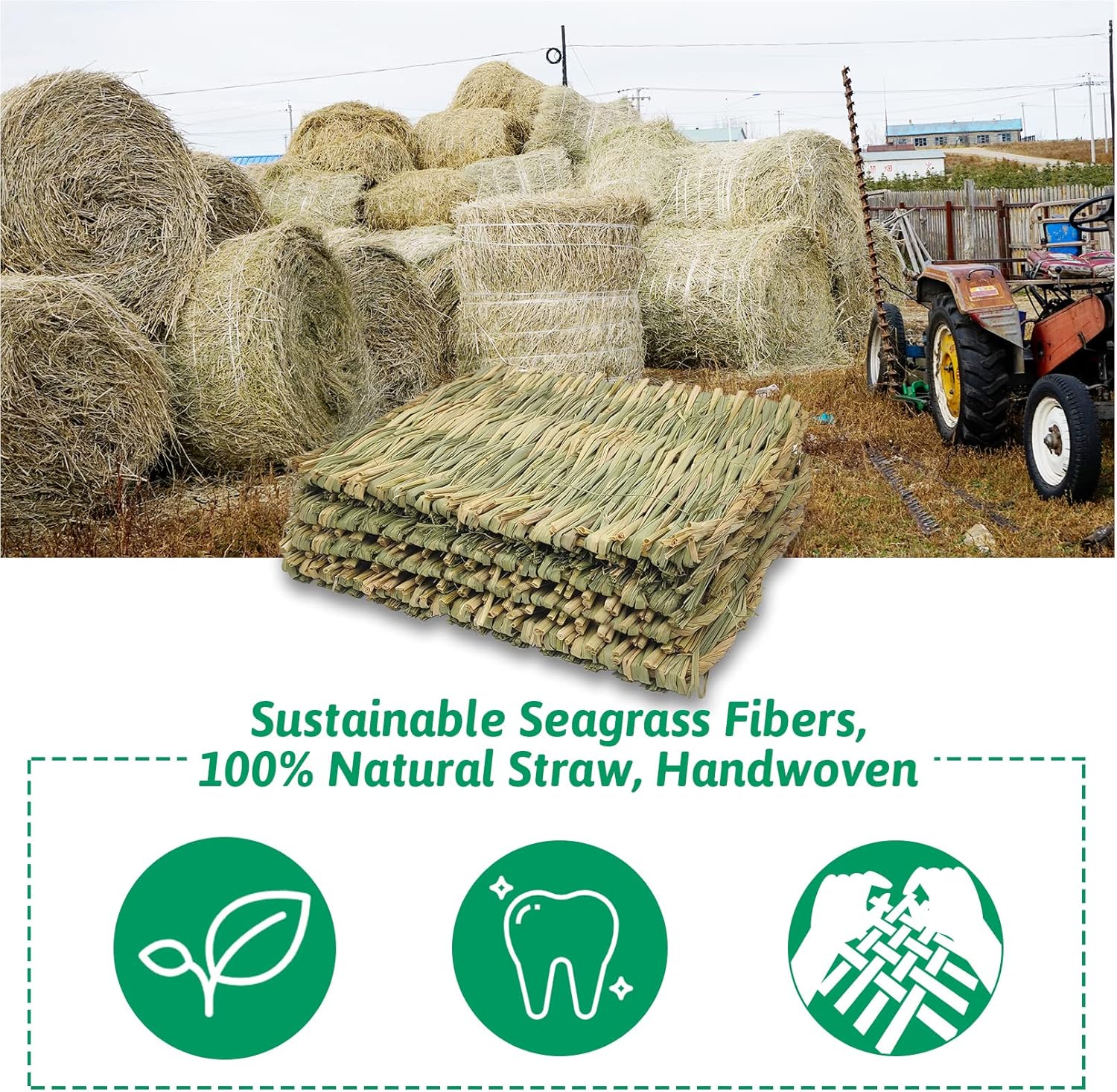 Grass Mat for Rabbit Bunny Chew Toys Woven Bed Mat for Guinea Pig Chinchilla Squirrel Hamster Cat Dog and Small Animal