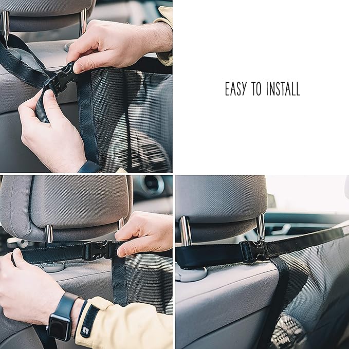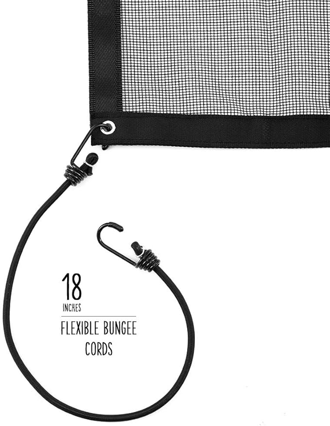 Dog Car Net Barrier - Universal Fit Sturdy Mesh, Easy to Install, Convenient for Air Conditioning, Easy to Clean & with Flexible Bungee Cords for Seat Movement