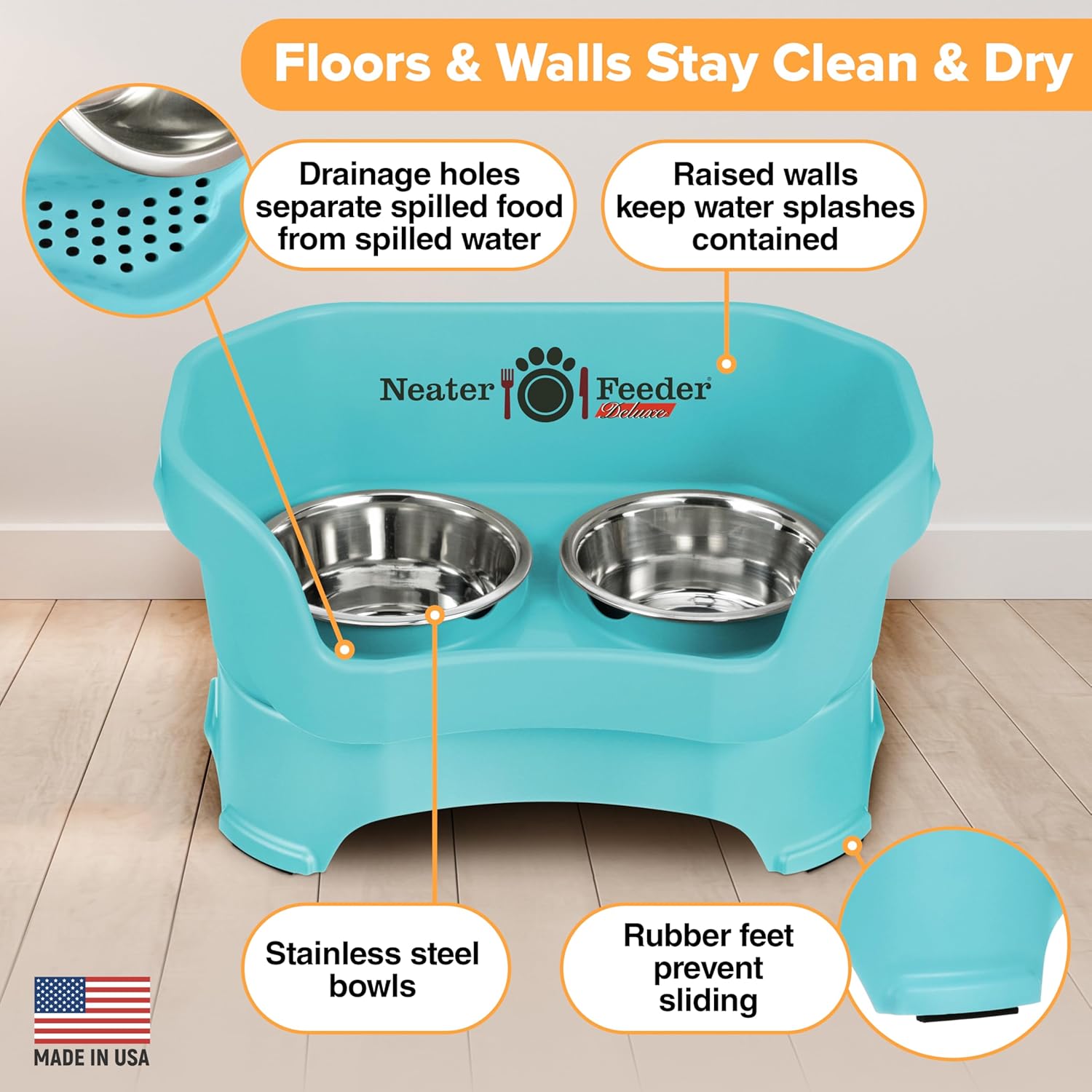 Neater Pet Brands Neater Feeder Deluxe Mess Proof Dog Bowls Elevated for Medium Dogs 19-40 lbs, Made in USA, No Spill Raised Dog Food Bowl Stand Feeding Station, Food and Water Bowl Set, Aquamarine