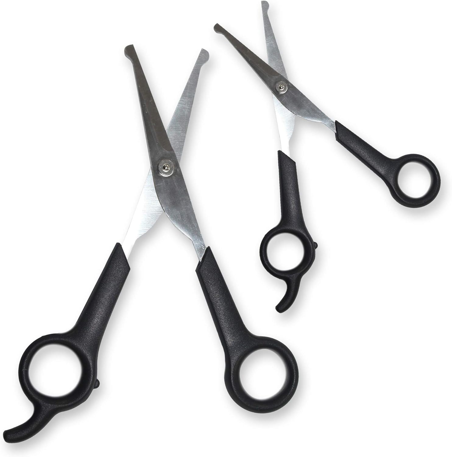 Pets First #1 Pet Grooming Scissors Body & Facial Trimmer Durable Stainless Steel Blades. Rounded Tips Shears for Long Medium Short Thick Wiry Curly Hair. Lightweight Cutter for Dogs & Cats. Set of 2