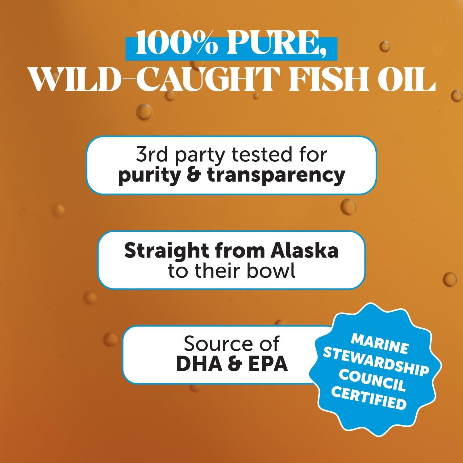 - PURE & SIMPLE: Your dog is more than a pet, they’re a member of the family, & they deserve the best. That’s why our fish oils are sustainably sourced from Alaska, & third party tested for transparency & purity to ensure that your pet is receiving 100% pure, wild caught fish oil. After all, they give us so much, the least we can do is give them the best.