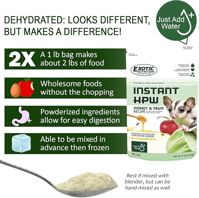Honey & Fruit Instant-HPW (1 lb.) - All Natural Vitamin Enriched Sugar Glider Food - Healthy & Nutritious - High Protein Wombaroo - Staple Diet