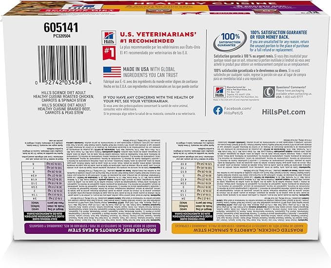 Hill's Science Diet Healthy Cuisine, Adult 1-6, Great Taste, Wet Dog Food, Variety Pack: Roasted Chicken, Carrots & Spinach; Braised Beef , Carrots & Peas Stew, 12.5 oz Can Variety Pack, Case of 12