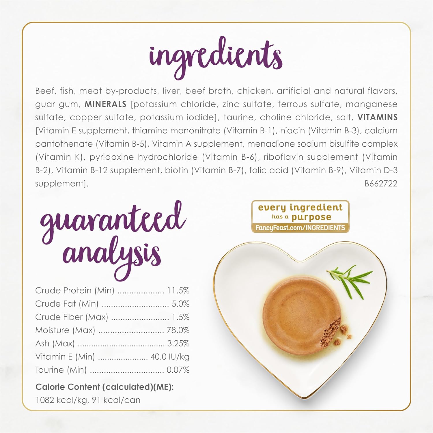 - Purina Fancy Feast senior wet cat food featuring real beef and made without artificial colors or preservatives