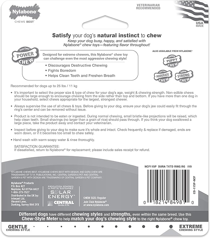 Nylabone Textured Ring Power Chew Toy for Small Dogs, Durable Dog Toys for Aggressive Chewers, Strong Dog Chew Bones To Keep Them Busy, Flavor Medley, Small - Up to 25 lbs, 1 Count