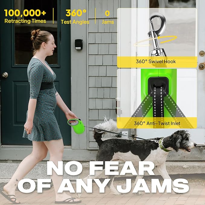 - HEAVY DUTY, DURABLE & STEADY - This Green retractable dog leash is made of 16ft high strength nylon tape with big durable rustproof swivel hook and steady impact-resistant ABS material, suitable for Large dogs or animals up to 110 lbs. Top durability Internal Coil Spring for Consistent Retraction several years.