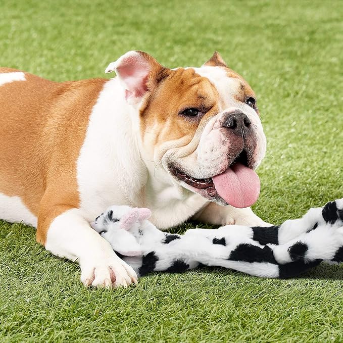 - SUPER VALUE PACK TOY PACK: 3 pack furry dog toy, including pig, cow, leopard, all flat and unstuffed. Every set comes with a storage box. Your pup will love their new squeaky friends