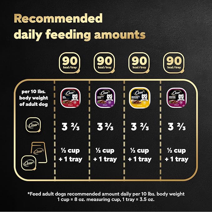 Cesar Wet Dog Food Classic Loaf in Sauce Filet Mignon Flavor, Porterhouse Steak Flavor, Grilled Steak & Eggs Flavor, and Beef Recipe Variety Pack 3.5 oz. Easy Peel Trays (60 Count)