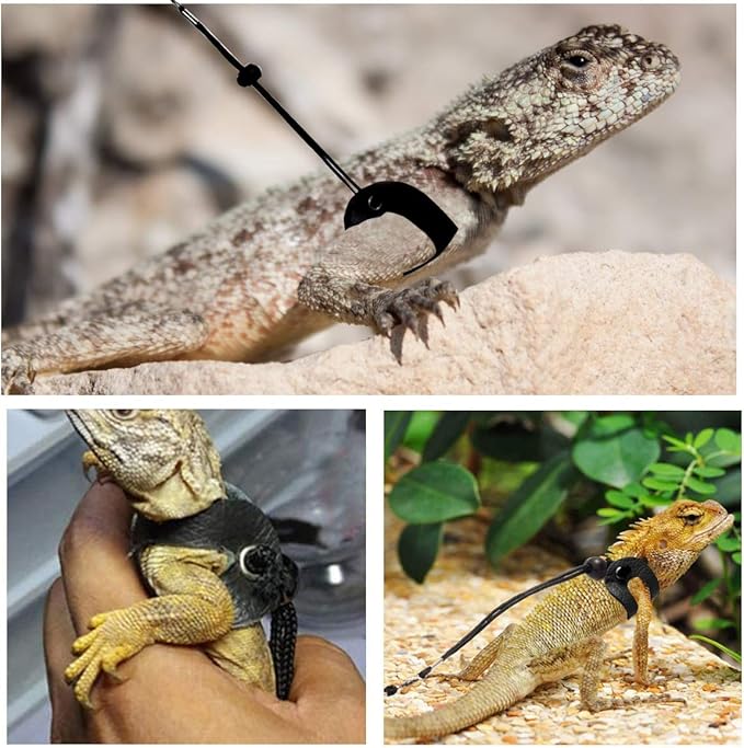 2 Colors Bearded Dragon Harness and Leash Adjustable(S,M,L) - Soft Leather Reptile Lizard Leash for Amphibians and Other Small Pet Animals Red Black