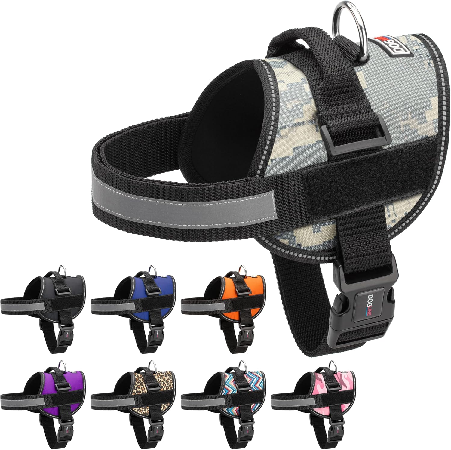 Dogline Dog Harness, Reflective No-Pull Adjustable Vest with Handle for Walking, Training, Breathable, No - Choke Harness for Small, Medium or Large Dogs Room for Patches Girth 18 to 24 in Urban Camo