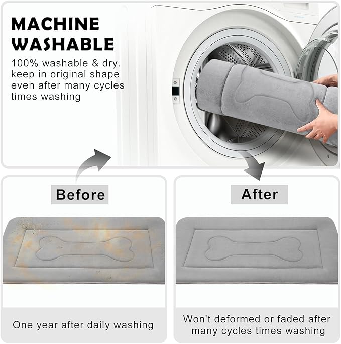 - 100% Washable Dog Crate Bed: Fabric fleece material mats allow both machine and hand wash in cold water, gentle cycle and tumble dry. The crate mat will recover original shape after many times cycles of washing.