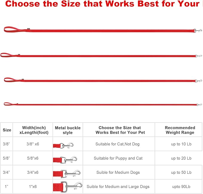 AMAGOOD 6 FT Puppy/Dog Leashes, Traditional Style Leash with Easy to Use Collar Hook, Great for Small, Medium and Large Dogs (3/4 in x 6 ft, Red)