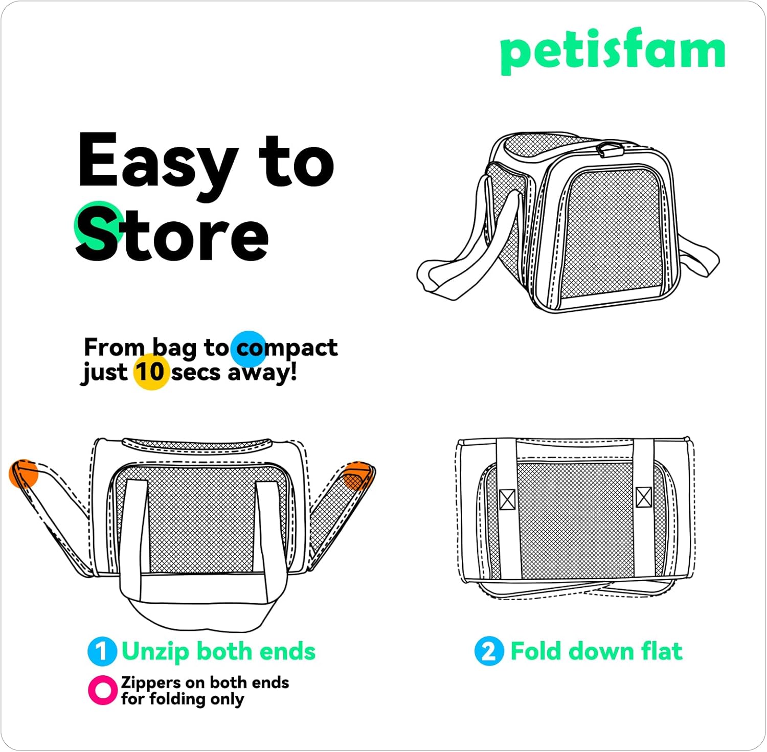 petisfam Top Load Cat Carrier for Medium Cats and Small Dogs with Washable Cozy Bed, 3 Doors and Shoulder Strap. Easy to get cat in, Easy Storage, Lightweight, Airline Approved