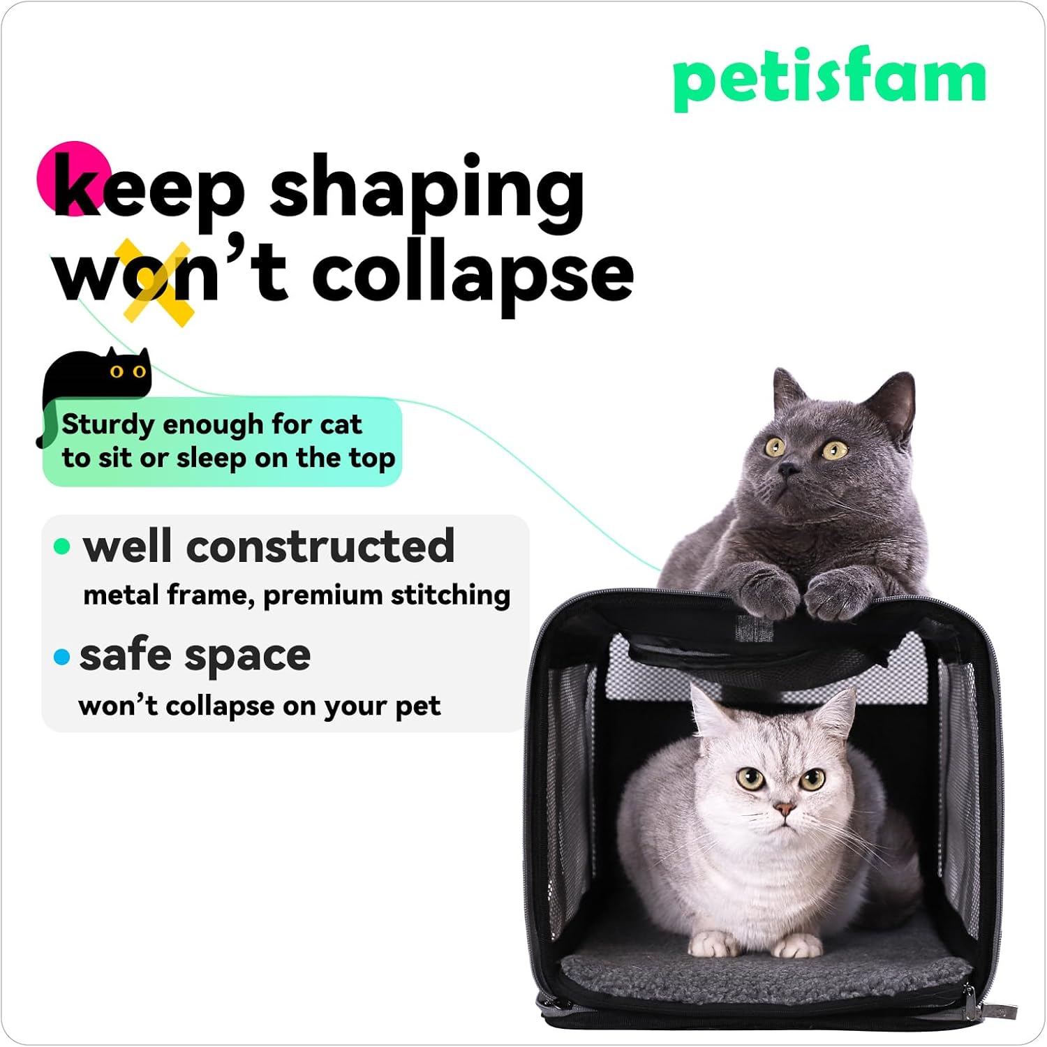 - As safe and sturdy as old fashioned rigid plastic carriers but much comfortable for pets and more convenient for you. If your fur babies hate carriers, pls try petisfam carrier, they will love it