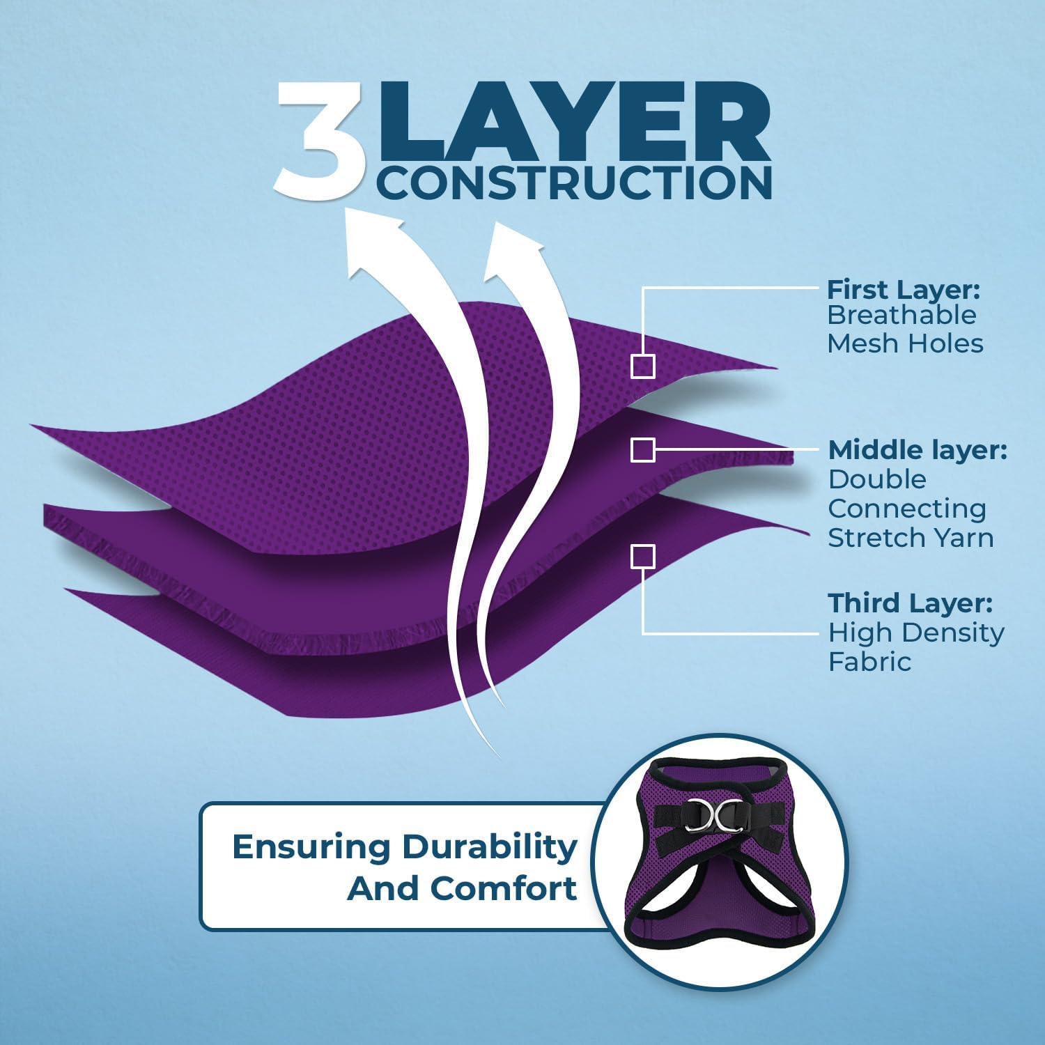 - Triple Security: Our harness provides three layers of protection with a secure hook and loop fastener, a sturdy buckle, and double D-rings, ensuring your pet's safety at all times