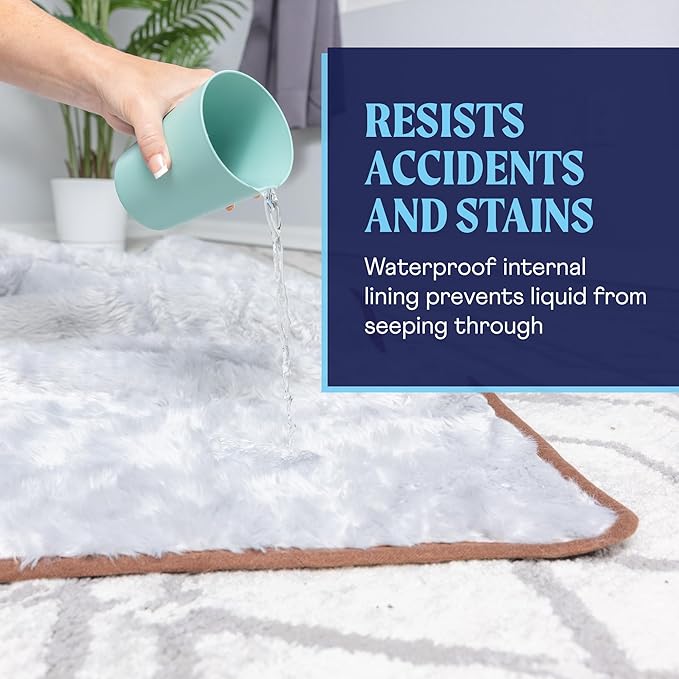 PupProtector Waterproof Throw Blanket for Dogs and Cats, Pet Blanket Cover for Couches, Sofas, Beds, Car Seats, Furniture, Calming Soft Faux Fur, White with Brown Accents, Original (60" L x 50" W)