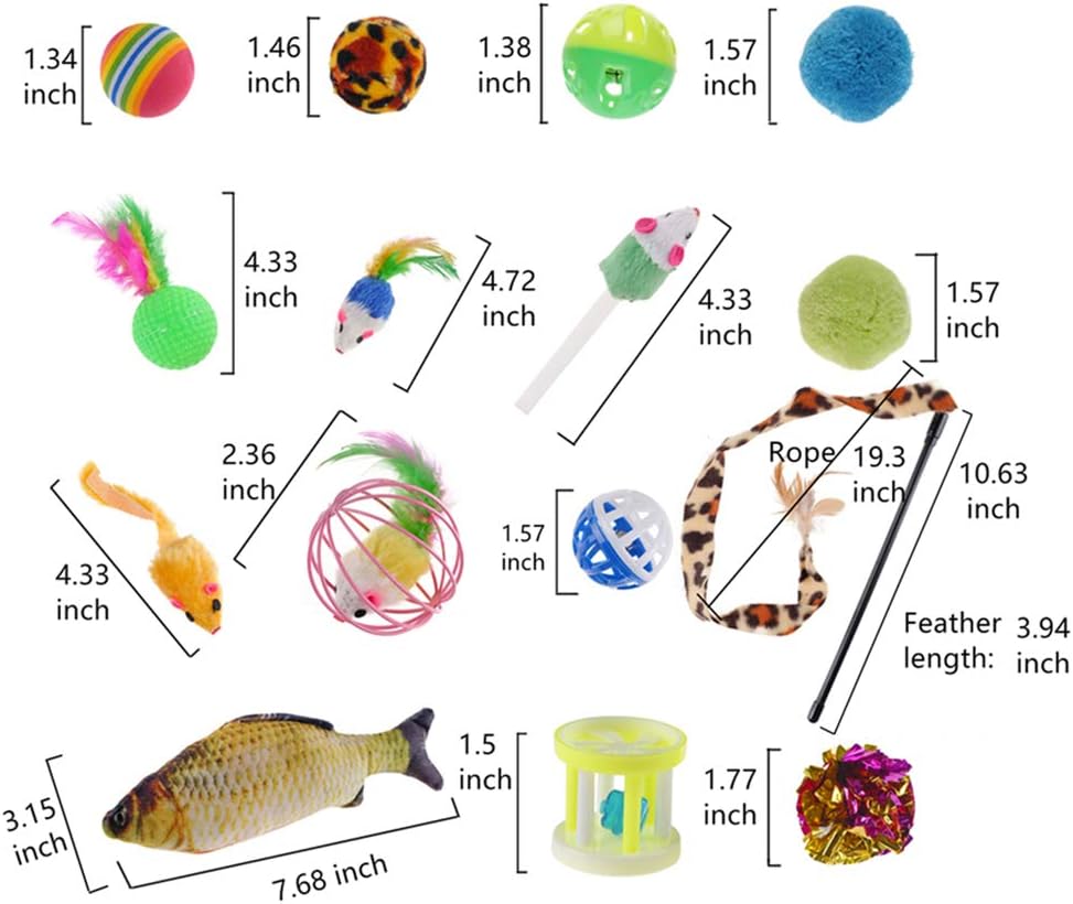 - Super Value Sets: 26 Pcs kitten toys, including fish, cat teaser wand, fluffy mouse, balls and variety colorful balls and bells