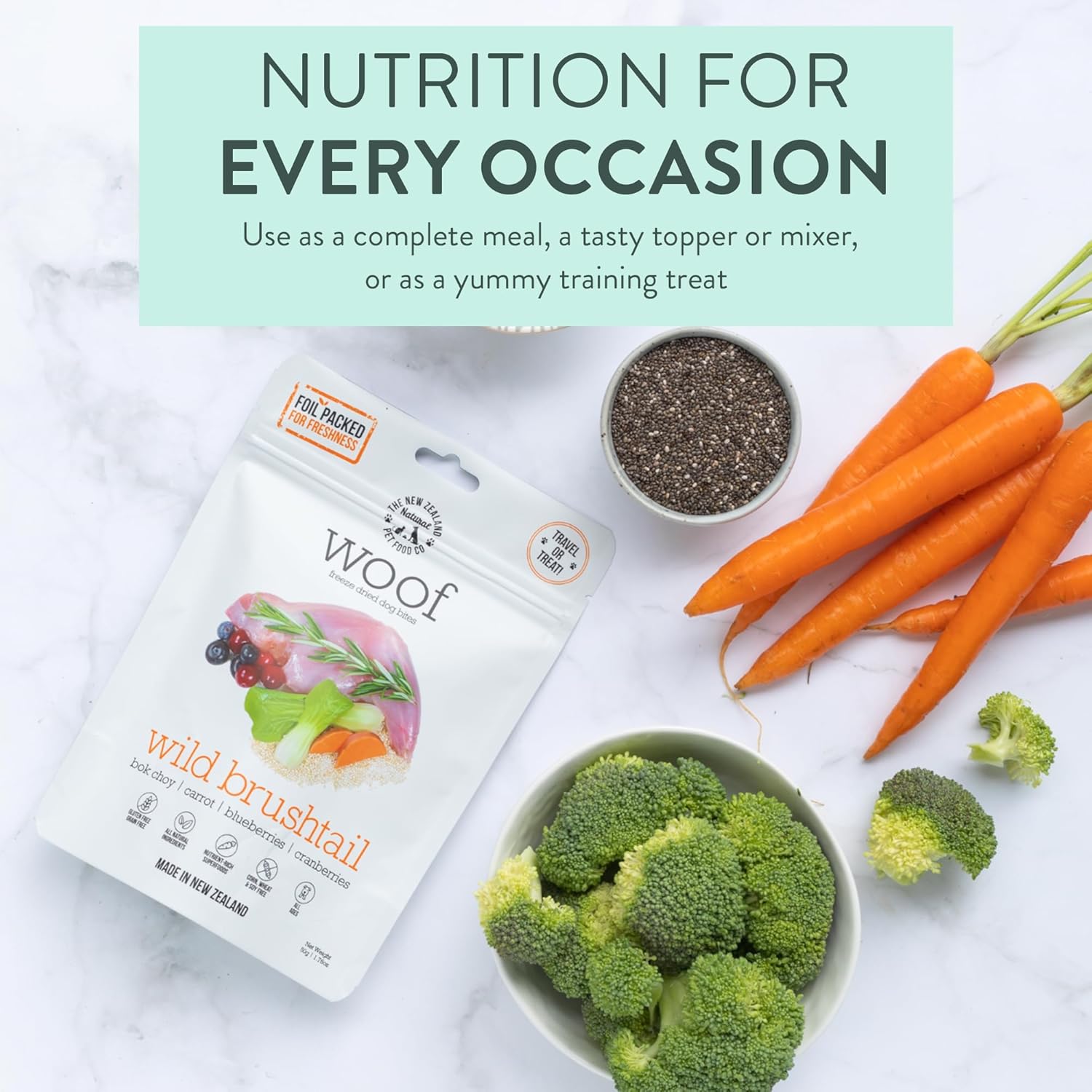 The New Zealand Natural Pet Food Co. Woof Freeze Dried Dog Food - Wild Brushtail, High Protein, Complete Diet, Dog Treats, All Life Stages - 1.76 oz