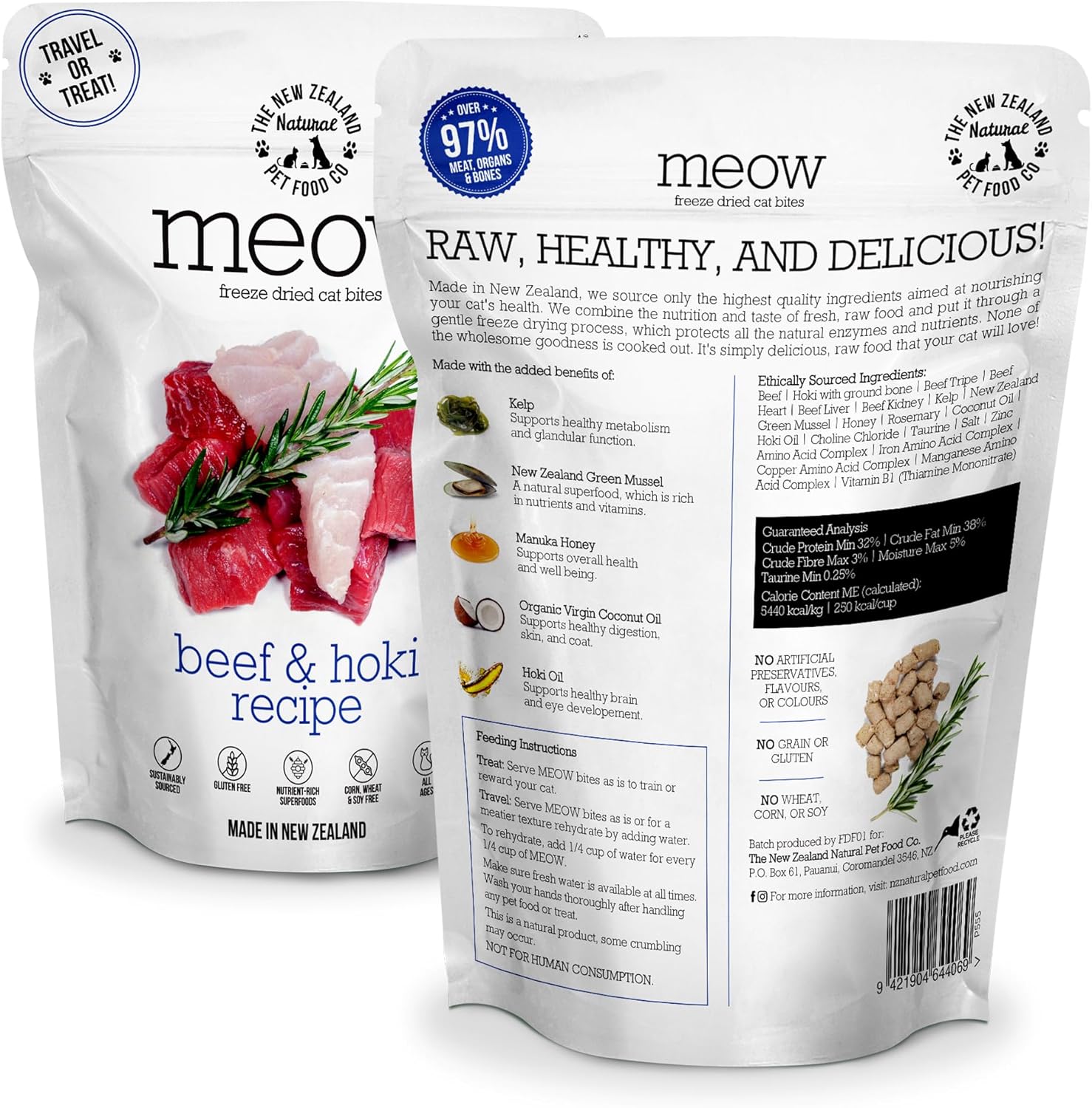 The New Zealand Natural Pet Food Co Meow Freeze Dried Cat Food - Beef & Hoki Recipe, High Protein, Meals & Toppers, Dry Cat Food,1.76 oz