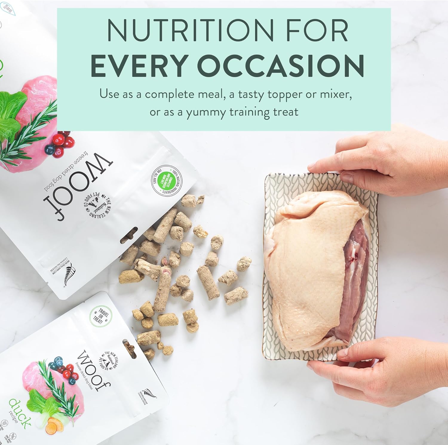The New Zealand Natural Pet Food Co WOOF Freeze Dried Dog Food - Duck Recipe, High Protein Dog Food, Natural Dog Treats, Toppers & Meals, 2.2 lb