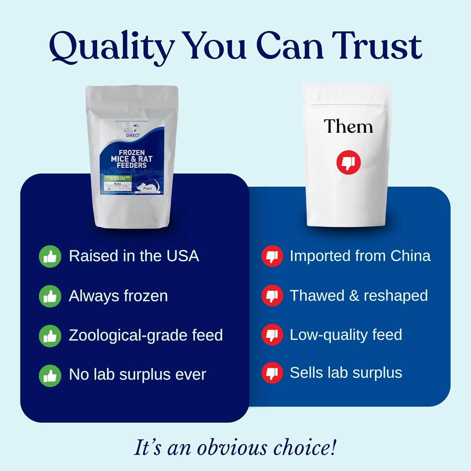 - Trusted; don’t risk inferior imported feeders from China or lab surplus for snakes and reptiles; these frozen pack of 20 rat larges are born in Cleveland Ga; there are no artificial ingredients or flavoring added