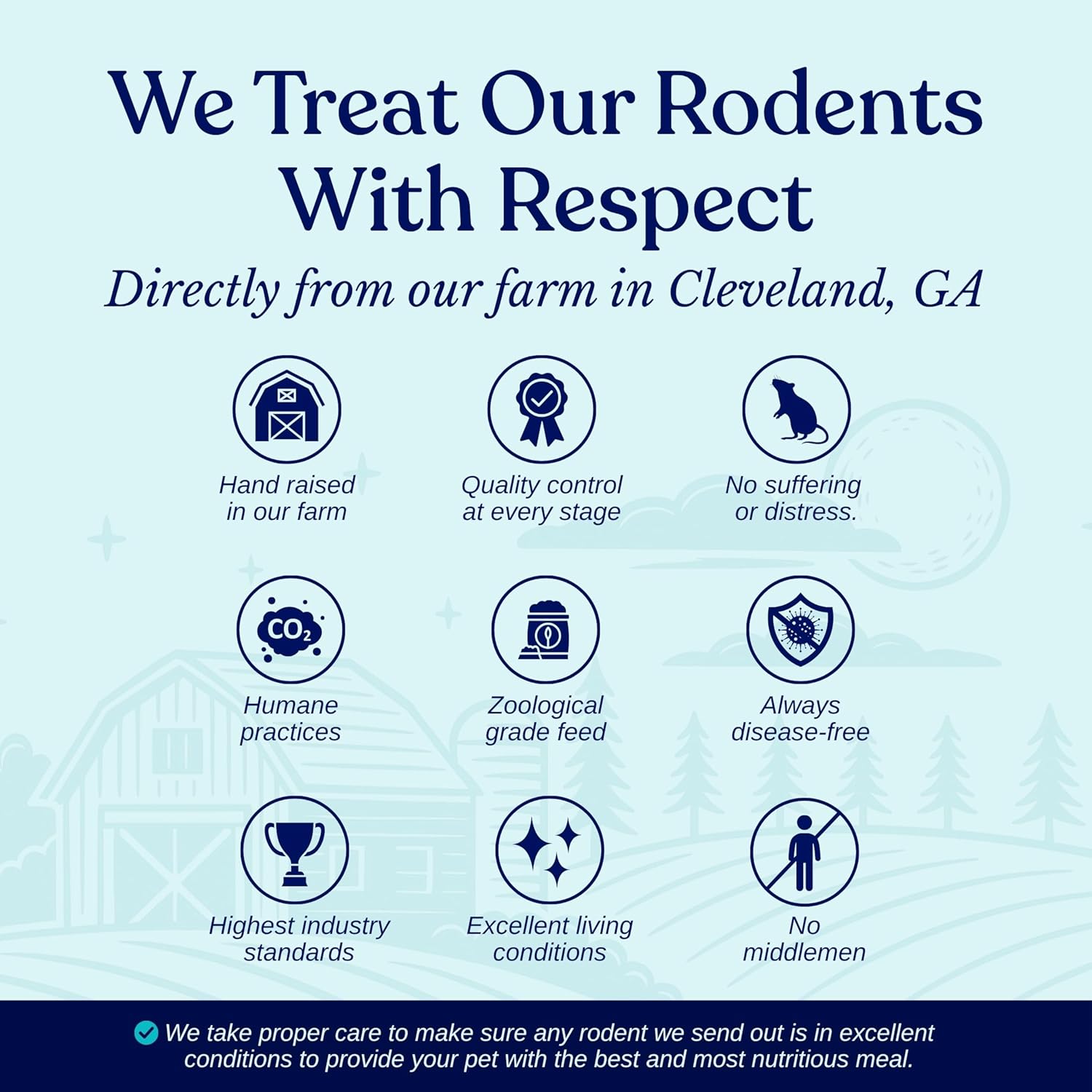 - Organic; this pack of frozen pack of 25 rat large feeders were born and raised in the Cleveland Ga; meaning you are not taking a chance with your pet consuming a lab surplus rodents or mice from China; your pet deserves the best with this product
