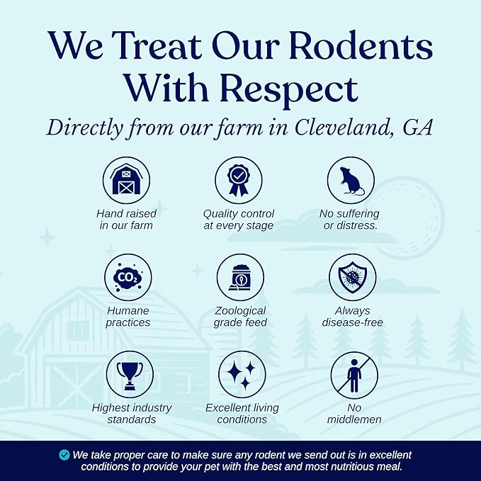 - Premium: All our rodents are fed a mouse & rat zoological grade feed to help ensure that our frozen mice and rats are the healthiest they can be for your pet; Better yet we ensure that our feeder mice & rats are always raised to the highest standards and are free of disease