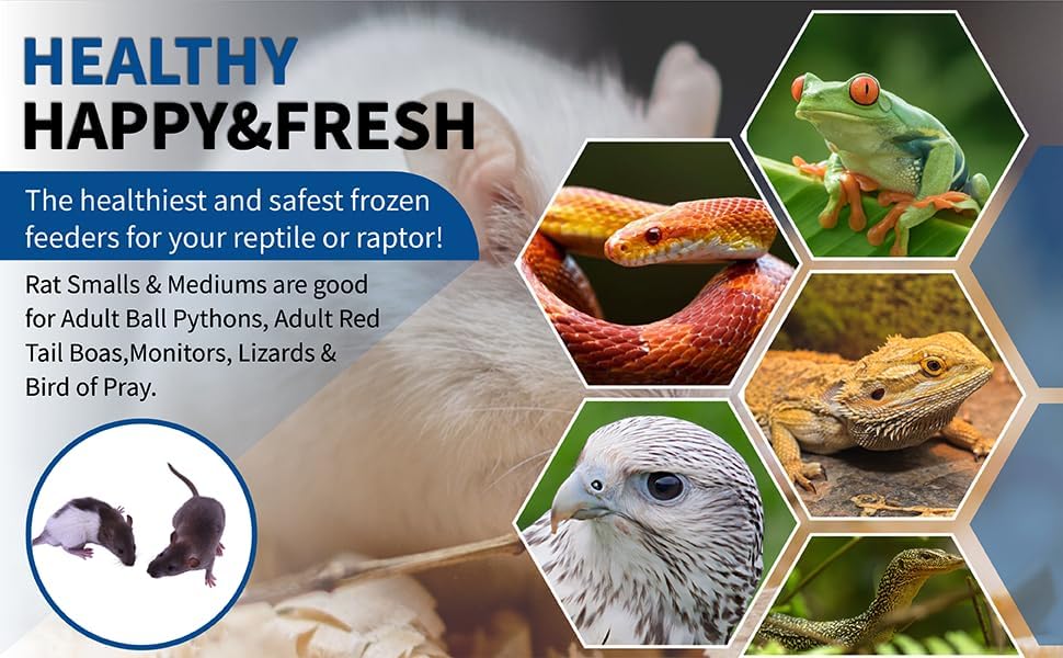 - HUMANE; This pack of 50 frozen Small & Medium Rats for snakes and reptiles has been produced under the most humane conditions; We only employ responsible staff who treat our feeder mice & rats with kindness and respect; Our feeder rats for snakes are put to sleep with Co2 so they never suffer