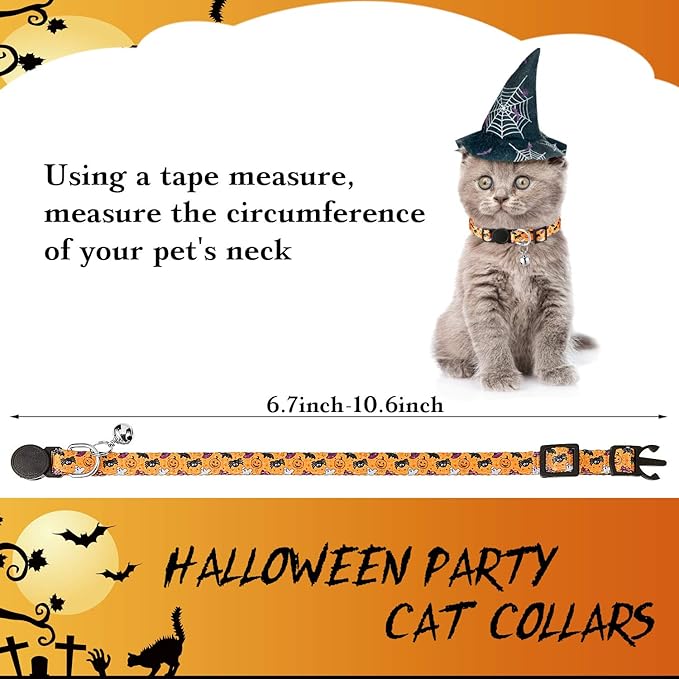 - 6 Styles: you can get 6 pieces Halloween style cat collars in different styles and colors; Enough quantity for your pet to use and replace; It also can be shared with families or friends who keep small pets