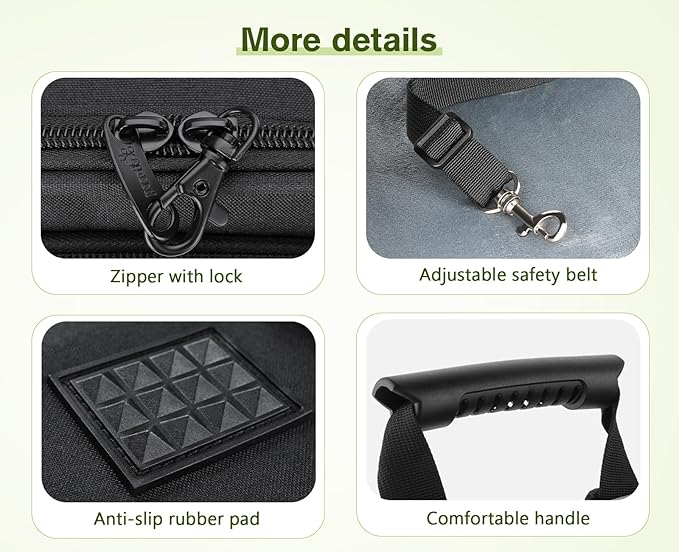 - 【SAFETY & STORAGE 】: 1, Made of high-quality Oxford Cloth, waterproof, anti-scratch, and non-irritating, let your pet breathe freely and relax. 2, Adopts lock-type zipper design to prevent the zipper from being opened by pets. Built-in retractable hook safety rope to prevent pets from escaping. 3, The pockets on both sides can store food, water bottle, poop bags, and some necessary accessories.